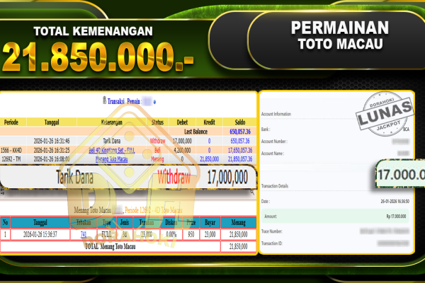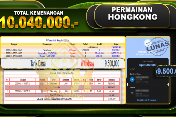 Bukti JP TOGEL HONGKONG – Selamat Kepada User ID: akoxxx atas kemenangan TOGEL HONGKONG Dengan Nominal Sebesar Rp 10.040.000,- . Yang pasti nya langsung LUNAS Sesuai Bukti. Kemenangan Berapapun Situs DoraHoki Akan Membayar Lunas yah Kami mengucapkan Terima Kasih telah mempercayakan DORAHOKI sebagai Bandar Online pilihan dalam bermain judi online. Semoga bosku bisa tetap bermain…