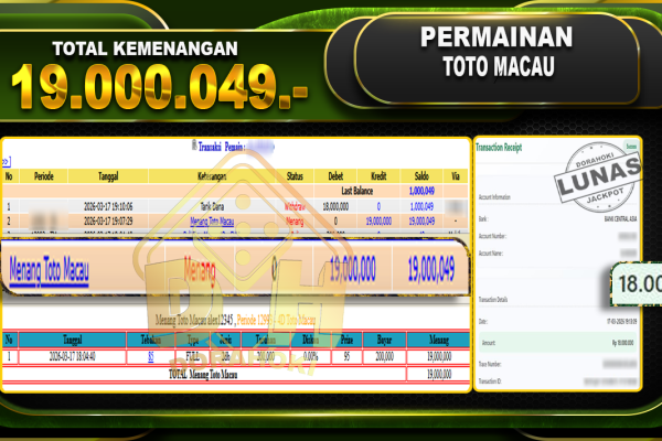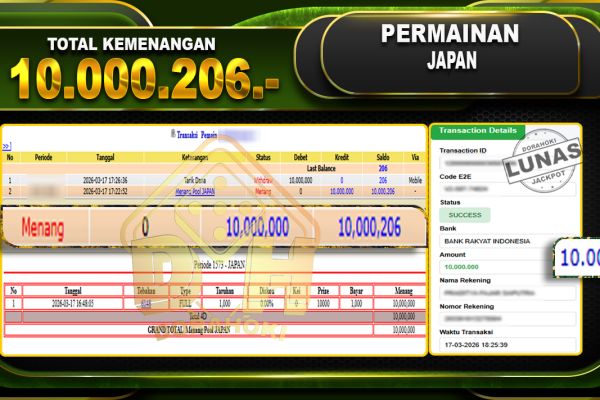 Bukti JP TOGEL SINGAPORE – Selamat Kepada User ID : H9txxx atas kemenangan TOGEL SINGAPORE Dengan Nominal Sebesar Rp. 14.550.000,- . Yang pasti nya langsung LUNAS Sesuai Bukti. Kemenangan Berapapun Situs DoraHoki Akan Membayar Lunas ya Kami mengucapkan Terima Kasih telah mempercayakan DORAHOKI sebagai Bandar Online pilihan dalam bermain judi online. Semoga bosku bisa tetap…