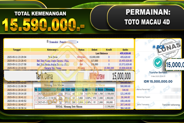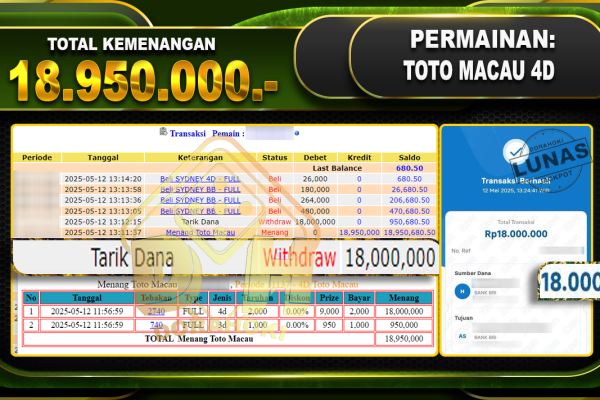 Bukti JP TOGEL TOTOMACAU 4D – ucapkan selamat kepada user id Kamxxx atas kemenangan di TOGEL TOTOMACAU 4D dengan total kemenangan Rp.18.950.000,- . Yang pasti nya langsung LUNAS sesuai bukti ya bosku. Dorahoki nih bosku berapapun akan tetap kami bayar lunas ya bosku. Kami mengucapkan Terima Kasih telah mempercayakan DORAHOKI sebagai Bandar Online pilihan dalam…