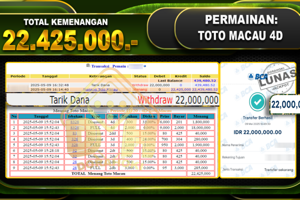 Bukti JP TOGEL TOTOMACAU 4D – ucapkan selamat kepada user id Mimxxx atas kemenangan di TOGEL TOTOMACAU 4D dengan total kemenangan Rp.21.000.000,- . Yang pasti nya langsung LUNAS sesuai bukti ya bosku. Dorahoki nih bosku berapapun akan tetap kami bayar lunas ya bosku. Kami mengucapkan Terima Kasih telah mempercayakan DORAHOKI sebagai Bandar Online pilihan dalam…