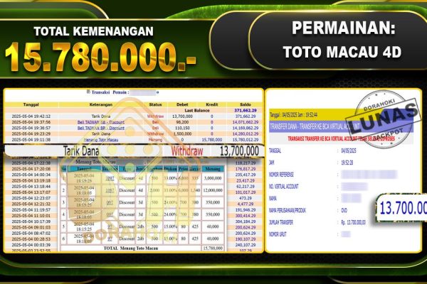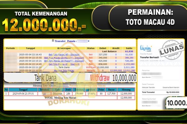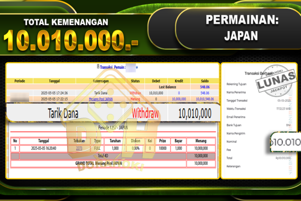 Bukti JP TOGEL JAPAN- ucapkan selamat kepada user id Jawxxx atas kemenangan di TOGEL JAPAN dengan total kemenangan Rp.10.010.000,- . Yang pasti nya langsung LUNAS sesuai bukti ya bosku. Dorahoki nih bosku berapapun akan tetap kami bayar lunas ya bosku. Kami mengucapkan Terima Kasih telah mempercayakan DORAHOKI sebagai Bandar Online pilihan dalam bermain judi online….
