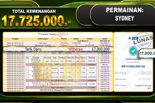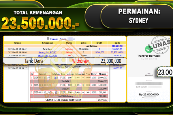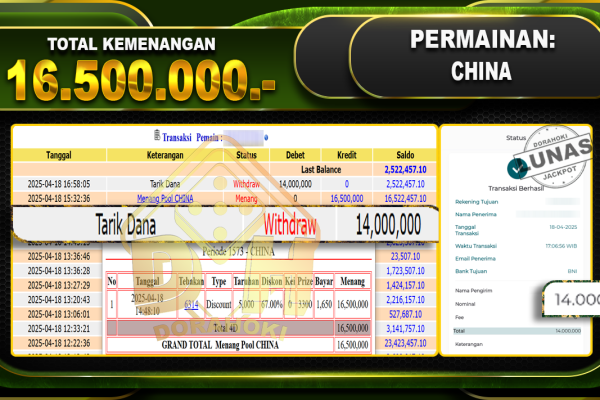 Bukti JP TOGEL SINGAPORE – ucapkan selamat kepada user id Sukxxx atas kemenangan di TOGEL SINGAPORE dengan total kemenangan Rp.10.000.000,- . Yang pasti nya langsung LUNAS sesuai bukti ya bosku. Dorahoki nih bosku berapapun akan tetap kami bayar lunas ya bosku. Kami mengucapkan Terima Kasih telah mempercayakan DORAHOKI sebagai Bandar Online pilihan dalam bermain judi online….