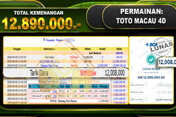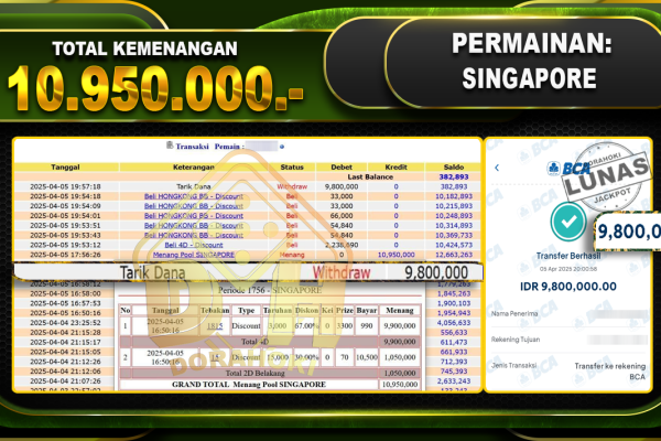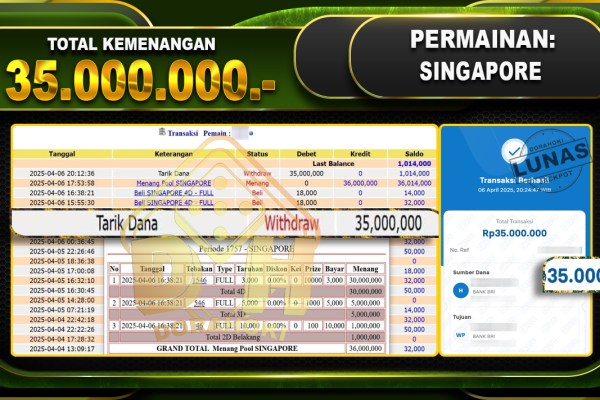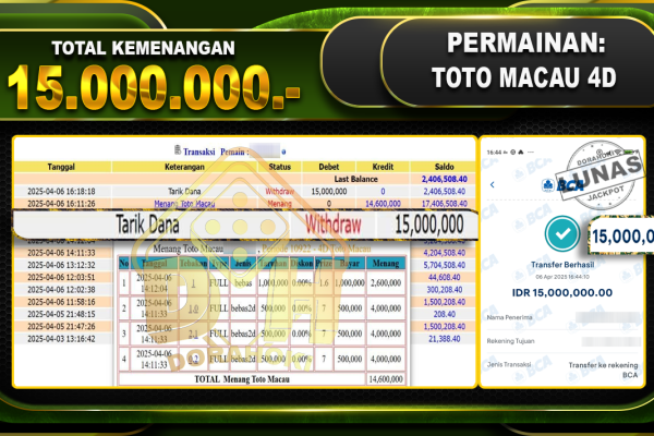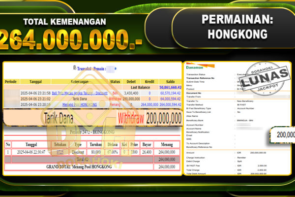 Bukti JP TOGEL 5D TOTOMACAU – ucapkan selamat kepada user id Hokxxx atas kemenangan di TOGEL 5D TOTOMACAU dengan total kemenangan Rp.41.645.000,- . Yang pasti nya langsung LUNAS sesuai bukti ya bosku. Dorahoki nih bosku berapapun akan tetap kami bayar lunas ya bosku. Kami mengucapkan Terima Kasih telah mempercayakan DORAHOKI sebagai Bandar Online pilihan dalam bermain…