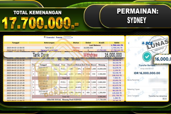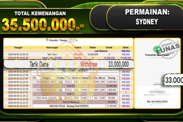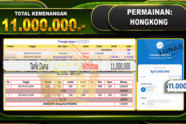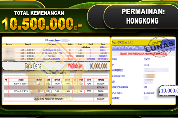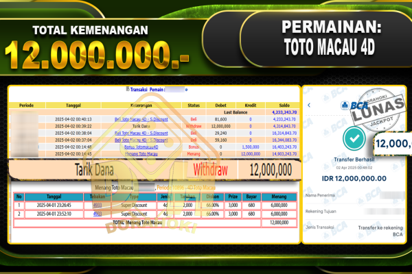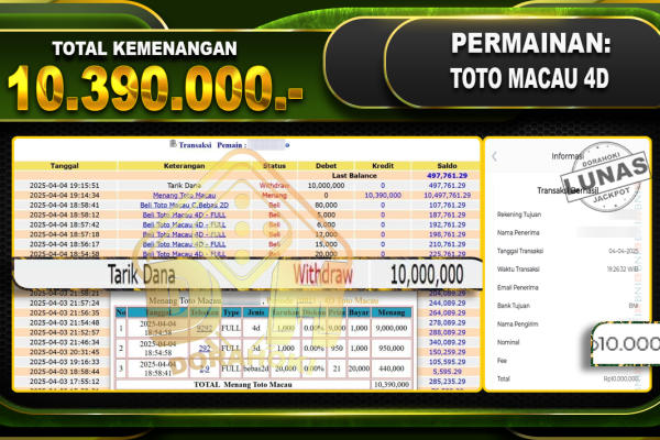 Bukti JP TOGEL TOTOMACAU 4D – ucapkan selamat kepada user id Fraxxx atas kemenangan di TOGEL TOTOMACAU 4D dengan total kemenangan Rp.10.390.000,- . Yang pasti nya langsung LUNAS sesuai bukti ya bosku. Dorahoki nih bosku berapapun akan tetap kami bayar lunas ya bosku. Kami mengucapkan Terima Kasih telah mempercayakan DORAHOKI sebagai Bandar Online pilihan dalam…