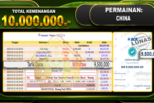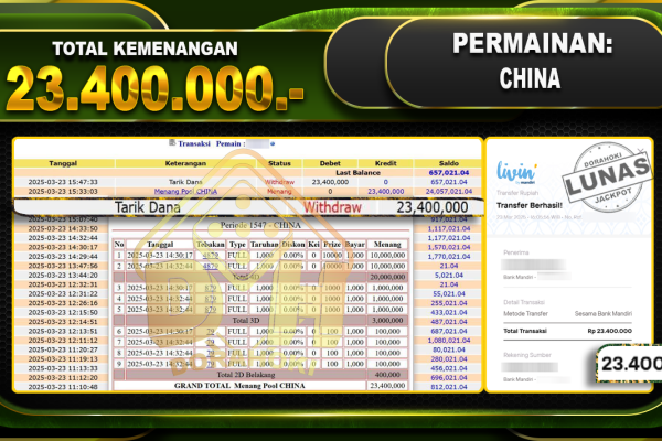 Bukti JP TOGEL 5D TOTOMACAU – ucapkan selamat kepada user id Putxxx atas kemenangan di TOGEL 5D TOTOMACAU dengan total kemenangan Rp.10.260.500,- . Yang pasti nya langsung LUNAS sesuai bukti ya bosku. Dorahoki nih bosku berapapun akan tetap kami bayar lunas ya bosku. Kami mengucapkan Terima Kasih telah mempercayakan DORAHOKI sebagai Bandar Online pilihan dalam bermain…