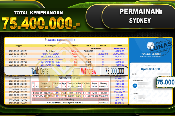 Bukti JP TOGEL SYDNEY – ucapkan selamat kepada user id Gerxxx atas kemenangan di  TOGEL SYDNEY  dengan total kemenangan Rp.75.400.000,- . Yang pasti nya langsung LUNAS sesuai bukti ya bosku. Dorahoki nih bosku berapapun akan tetap kami bayar lunas ya bosku. Kami mengucapkan Terima Kasih telah mempercayakan DORAHOKI sebagai Bandar Online pilihan dalam bermain judi…