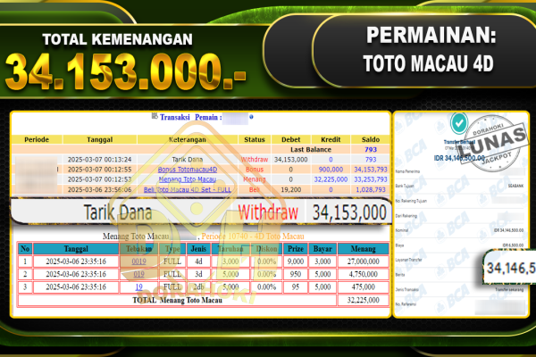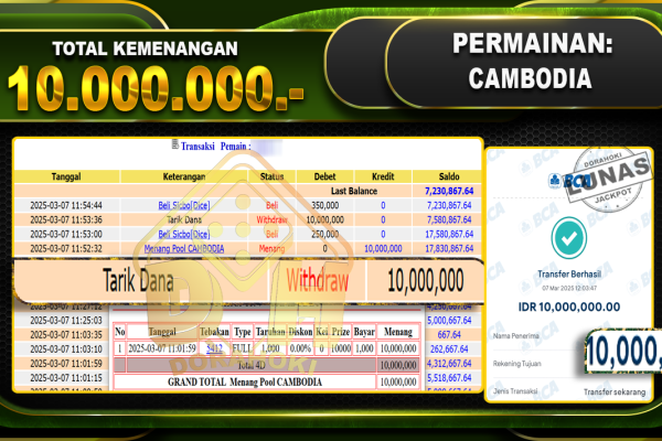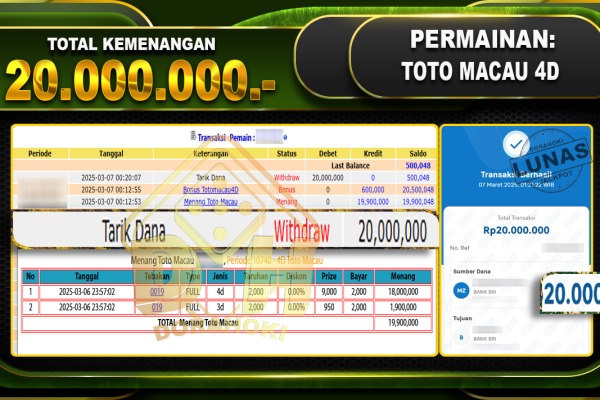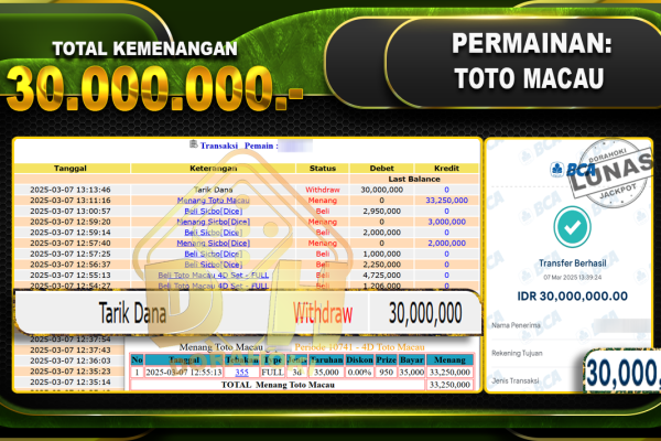 Bukti JP TOGEL TOTO MACAU 4D – ucapkan selamat kepada user id Gapxxx atas kemenangan di TOGEL TOTO MACAU 4D dengan total kemenangan Rp.30.000.000,- . Yang pasti nya langsung LUNAS sesuai bukti ya bosku. Dorahoki nih bosku berapapun akan tetap kami bayar lunas ya bosku. Kami mengucapkan Terima Kasih telah mempercayakan DORAHOKI sebagai Bandar Online…