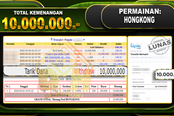 Bukti JP TOGEL TAIWAN- ucapkan selamat kepada user id Tunxxx atas kemenangan di TOGEL TAIWAN dengan total kemenangan Rp.18.500.000,- . Yang pasti nya langsung LUNAS sesuai bukti ya bosku. Dorahoki nih bosku berapapun akan tetap kami bayar lunas ya bosku. Kami mengucapkan Terima Kasih telah mempercayakan DORAHOKI sebagai Bandar Online pilihan dalam bermain judi online. Semoga…