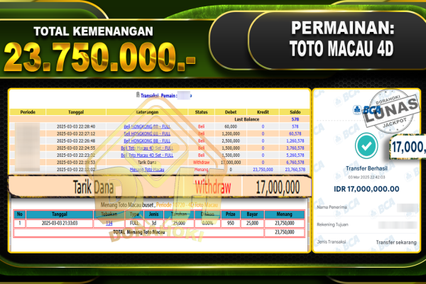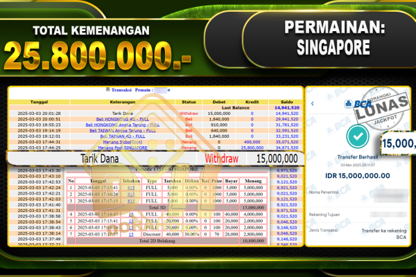 Bukti JP TOGEL TAIWAN- ucapkan selamat kepada user id Aguxxx atas kemenangan di TOGEL TAIWAN dengan total kemenangan Rp.11.000.000,- . Yang pasti nya langsung LUNAS sesuai bukti ya bosku. Dorahoki nih bosku berapapun akan tetap kami bayar lunas ya bosku. Kami mengucapkan Terima Kasih telah mempercayakan DORAHOKI sebagai Bandar Online pilihan dalam bermain judi online. Semoga…