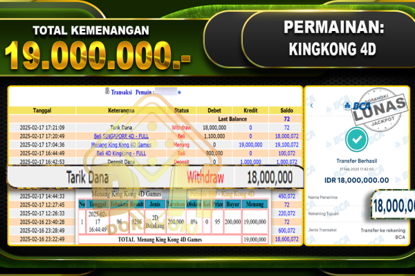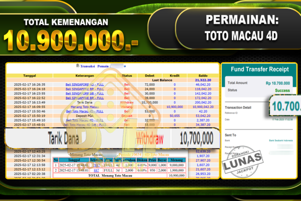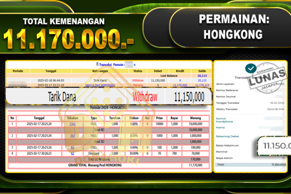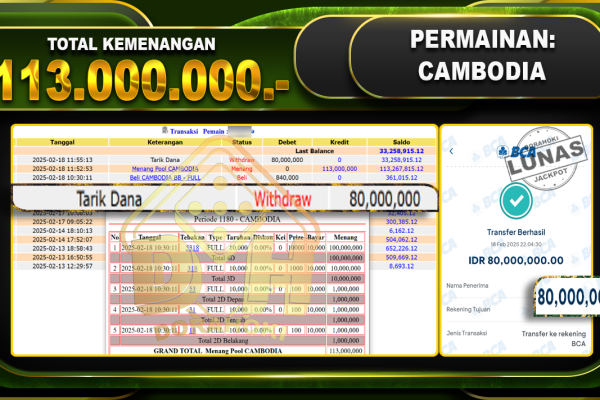 Bukti JP TOGEL CAMBODIA – ucapkan selamat kepada user id yatxxx atas kemenangan di TOGEL CAMBODIA dengan total kemenangan Rp.113.000.000,- . Yang pasti nya langsung LUNAS sesuai bukti ya bosku. Dorahoki nih bosku berapapun akan tetap kami bayar lunas ya bosku. Kami mengucapkan Terima Kasih telah mempercayakan DORAHOKI sebagai Bandar Online pilihan dalam bermain judi online….