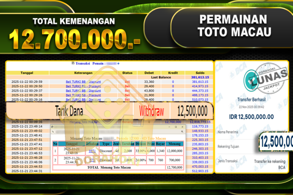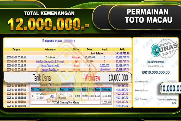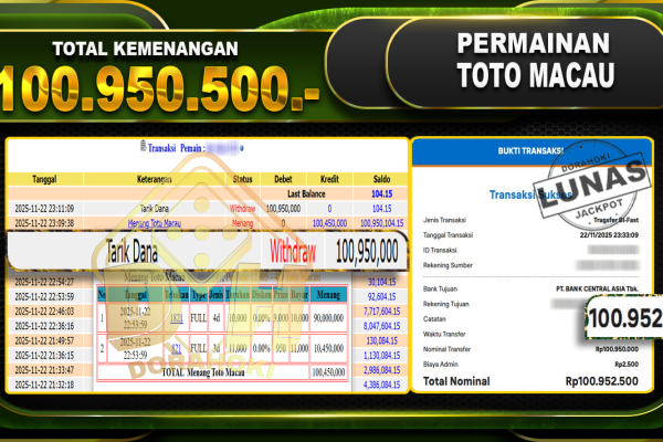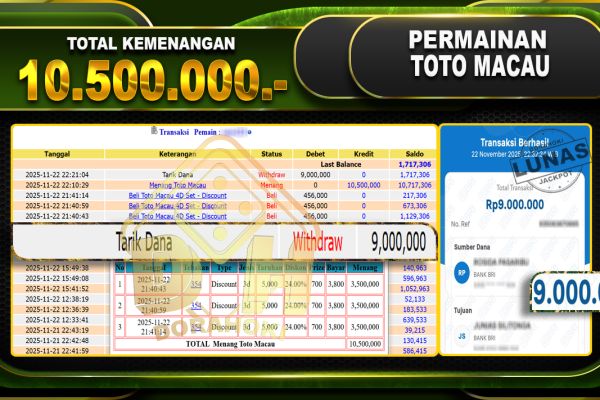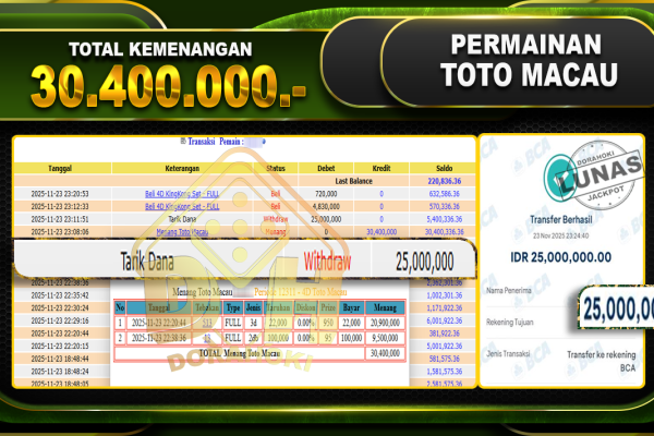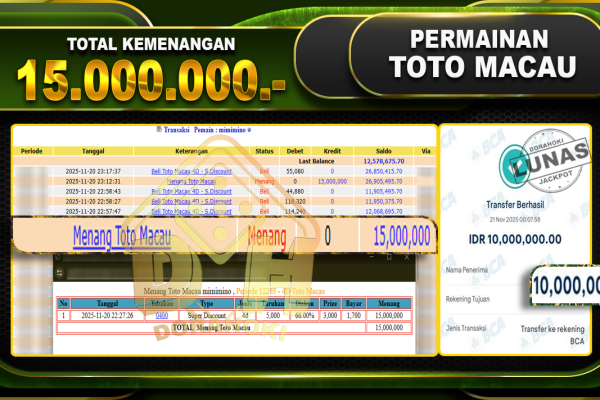 Bukti JP TOGEL TOTO MACAU 4D – ucapkan selamat kepada user id busxx atas kemenangan di TOGEL TOTO MACAU 4D dengan total kemenangan Rp.30,400,000,- Yang pasti nya langsung LUNAS sesuai bukti ya bosku. Dorahoki nih bosku berapapun akan tetap kami bayar lunas ya bosku