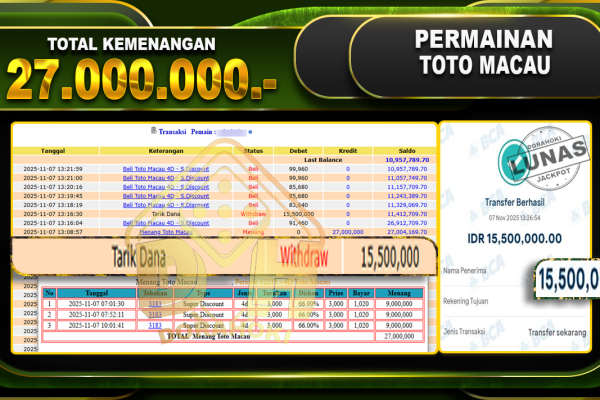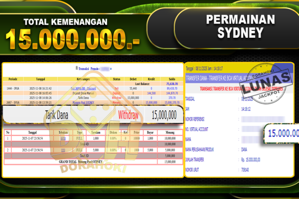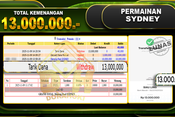 Bukti JP TOGEL SYDNEY – ucapkan selamat kepada user id clixx atas kemenangan di TOGEL SYDNEY dengan total kemenangan Rp.13,000,000,- Yang pasti nya langsung LUNAS sesuai bukti ya bosku. Dorahoki nih bosku berapapun akan tetap kami bayar lunas ya bosku