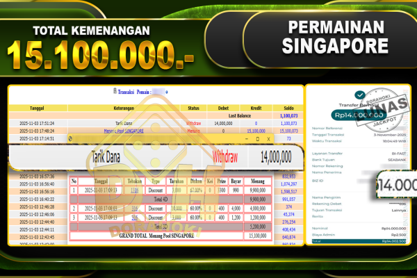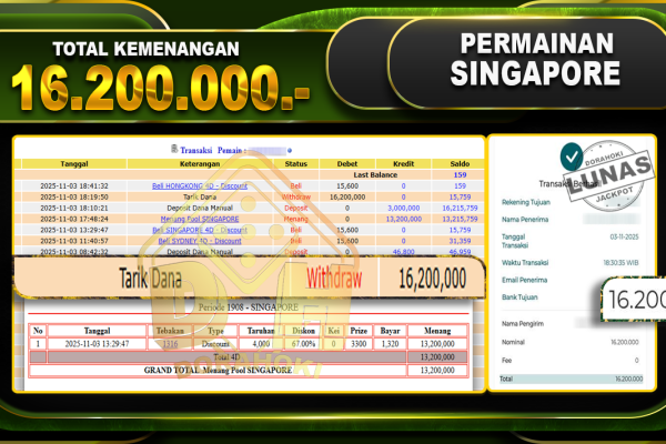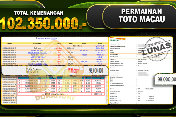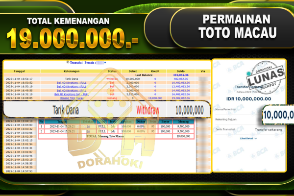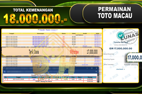Bukti JP TOGEL TOTO MACAU 4D – ucapkan selamat kepada user id ahoxxxxx atas kemenangan di TOGEL TOTO MACAU 4D dengan total kemenangan Rp.18,000,000,- Yang pasti nya langsung LUNAS sesuai bukti ya bosku. Dorahoki nih bosku berapapun akan tetap kami bayar lunas ya bosku