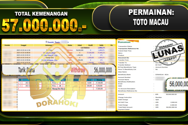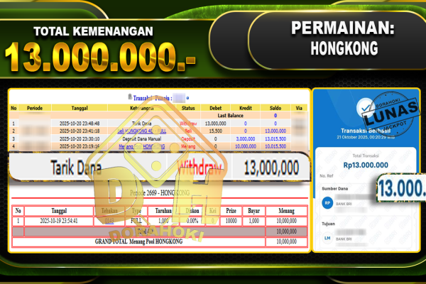 Bukti JP TOGEL HONGKONG – ucapkan selamat kepada user id buxxxx atas kemenangan di TOGEL HONGKONG dengan total kemenangan Rp.13,000,000,- . Yang pasti nya langsung LUNAS sesuai bukti ya bosku. Dorahoki nih bosku berapapun akan tetap kami bayar lunas ya bosku. Kami mengucapkan Terima Kasih telah mempercayakan DORAHOKI sebagai Bandar Online pilihan dalam bermain judi online….
