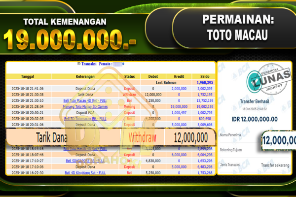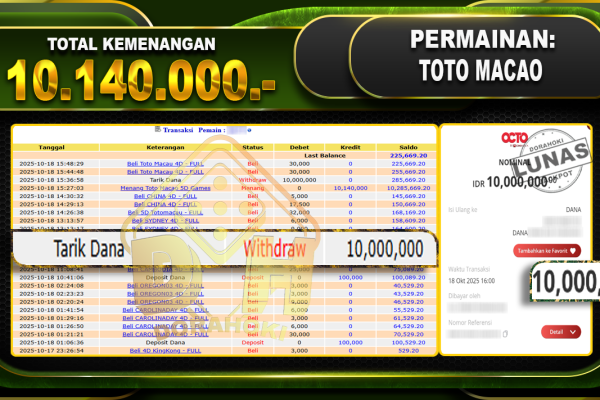 Bukti JP TOGEL SINGAPORE – ucapkan selamat kepada user id vamxxxx atas kemenangan di TOGEL SINGAPORE dengan total kemenangan Rp.13,000,000,- Yang pasti nya langsung LUNAS sesuai bukti ya bosku. Dorahoki nih bosku berapapun akan tetap kami bayar lunas ya bosku