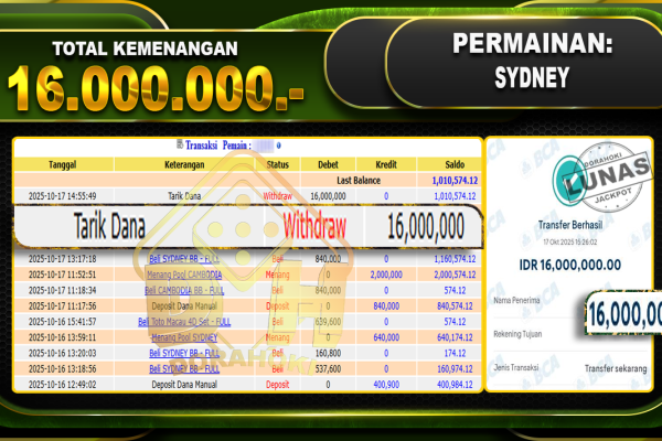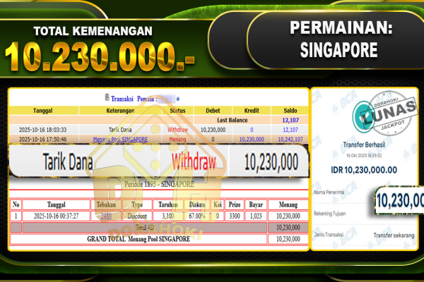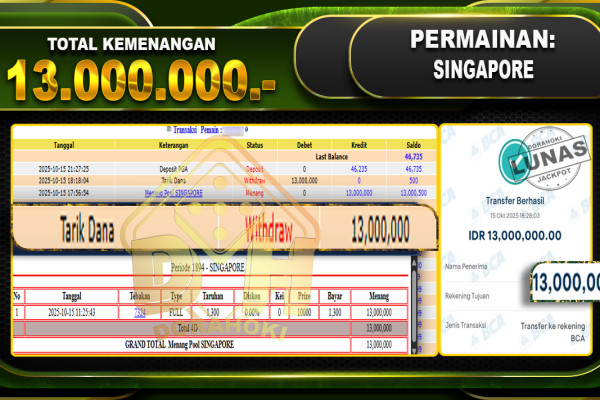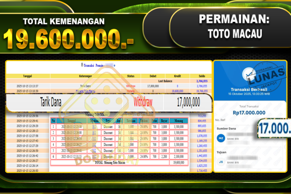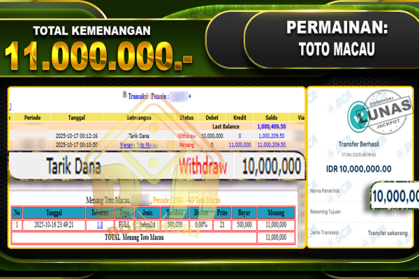 Bukti JP TOGEL TOTO MACAU 4D – ucapkan selamat kepada user id sagxxxx atas kemenangan di TOGEL TOTO MACAU 4D dengan total kemenangan Rp.11,000,000,- Yang pasti nya langsung LUNAS sesuai bukti ya bosku. Dorahoki nih bosku berapapun akan tetap kami bayar lunas ya bosku