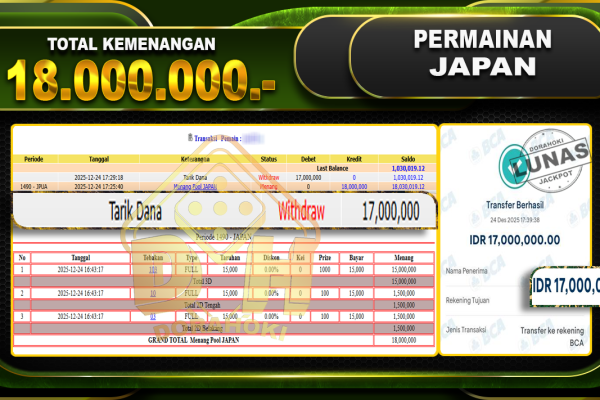 Bukti JP TOGEL HONGKONG – ucapkan selamat kepada user id derxxxxx atas kemenangan di TOGEL HONGKONG dengan total kemenangan Rp.14.220.000,- . Yang pasti nya langsung LUNAS sesuai bukti ya bosku. Dorahoki nih bosku berapapun akan tetap kami bayar lunas ya bosku. Kami mengucapkan Terima Kasih telah mempercayakan DORAHOKI sebagai Bandar Online pilihan dalam bermain judi online….