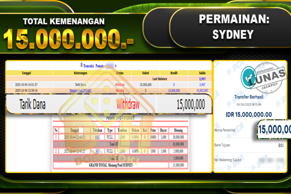 Bukti JP TOGEL TOTO MACAU – ucapkan selamat kepada user id harxxxx atas kemenangan di TOGEL TOTO MACAU dengan total kemenangan Rp.17,100,000,- Yang pasti nya langsung LUNAS sesuai bukti ya bosku. Dorahoki nih bosku berapapun akan tetap kami bayar lunas ya bosku