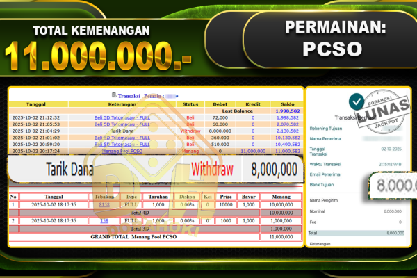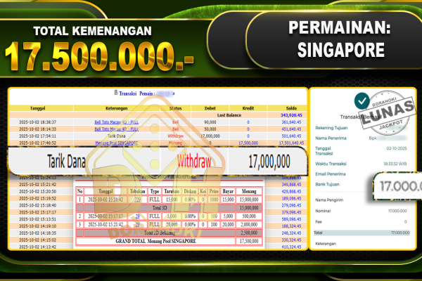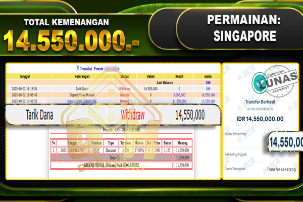 Bukti JP TOGEL TOTO MACAU – ucapkan selamat kepada user id sigxxxxx atas kemenangan di TOGEL TOTO MACAU dengan total kemenangan Rp.12,515,000,- Yang pasti nya langsung LUNAS sesuai bukti ya bosku. Dorahoki nih bosku berapapun akan tetap kami bayar lunas ya bosku