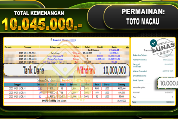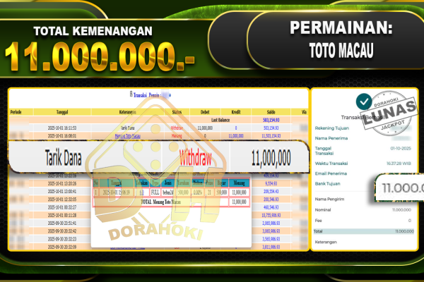Bukti JP TOGEL PCSO- ucapkan selamat kepada user id OTxxxx atas kemenangan di TOGEL PCSO dengan total kemenangan Rp.11,000,000,- . Yang pasti nya langsung LUNAS sesuai bukti ya bosku. Dorahoki nih bosku berapapun akan tetap kami bayar lunas ya bosku. Kami mengucapkan Terima Kasih telah mempercayakan DORAHOKI sebagai Bandar Online pilihan dalam bermain judi online….