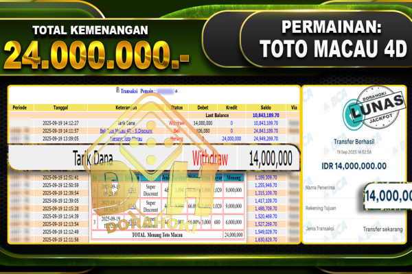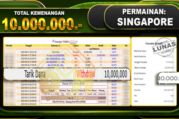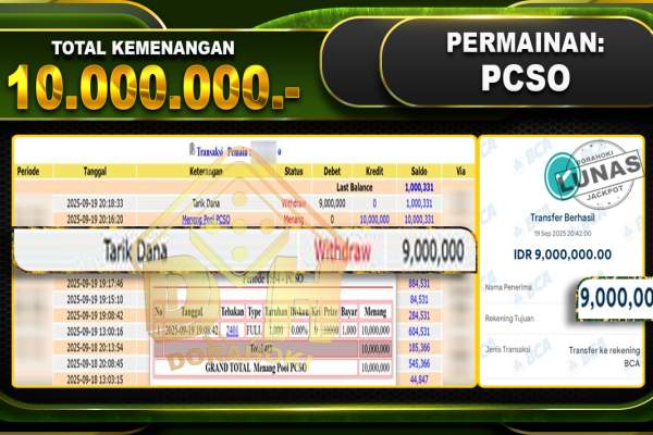 Bukti JP TOGEL PCSO- ucapkan selamat kepada user id Hanxxx atas kemenangan di TOGEL PCSO dengan total kemenangan Rp.10,000,000,- . Yang pasti nya langsung LUNAS sesuai bukti ya bosku. Dorahoki nih bosku berapapun akan tetap kami bayar lunas ya bosku. Kami mengucapkan Terima Kasih telah mempercayakan DORAHOKI sebagai Bandar Online pilihan dalam bermain judi online….