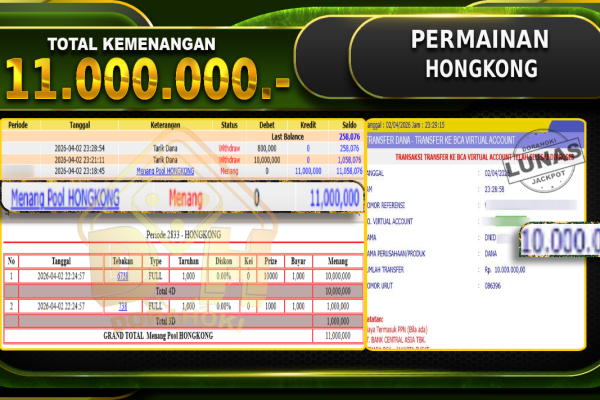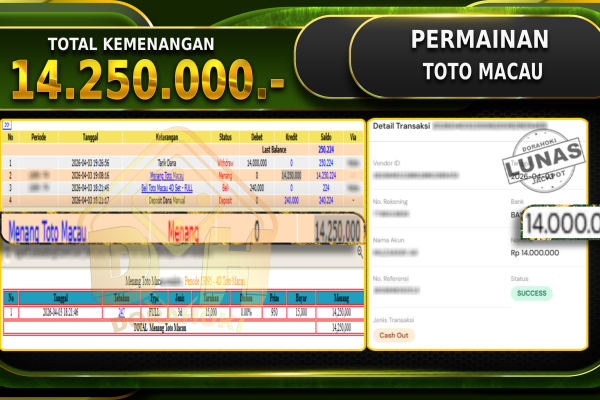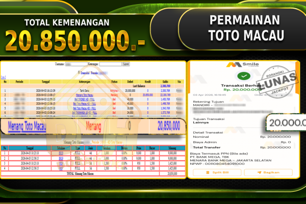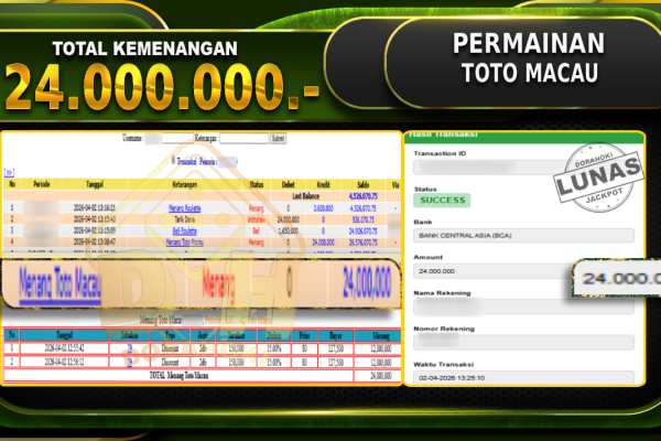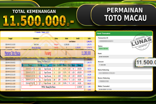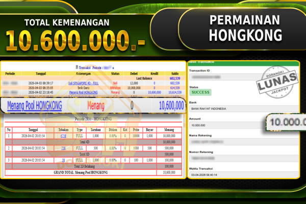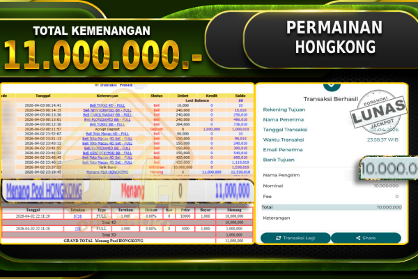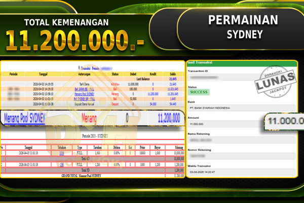 Bukti JP TOGEL SYDNEY – Selamat Kepada User ID : Aroxxx atas kemenangan TOGEL SYDNEY Dengan Nominal Sebesar Rp 11.200.000,- . Yang pasti nya langsung LUNAS Sesuai Bukti. Kemenangan Berapapun Situs DoraHoki Akan Membayar Lunas ya Kami mengucapkan Terima Kasih telah mempercayakan DORAHOKI sebagai Bandar Online pilihan dalam bermain judi online. Semoga bosku bisa tetap…