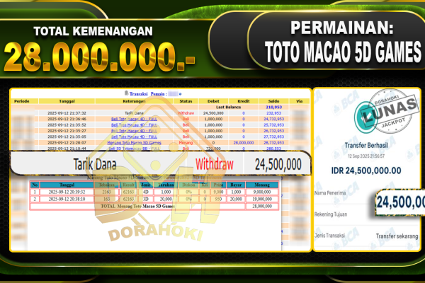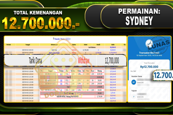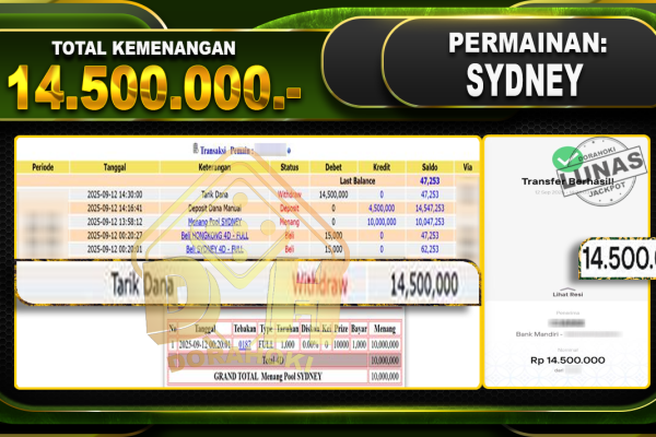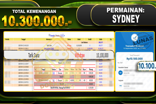 Bukti JP TOGEL SYDNEY – ucapkan selamat kepada user id Ygmxxx atas kemenangan di TOGEL SYDNEY dengan total kemenangan Rp.10,300,000,- Yang pasti nya langsung LUNAS sesuai bukti ya bosku. Dorahoki nih bosku berapapun akan tetap kami bayar lunas ya bosku