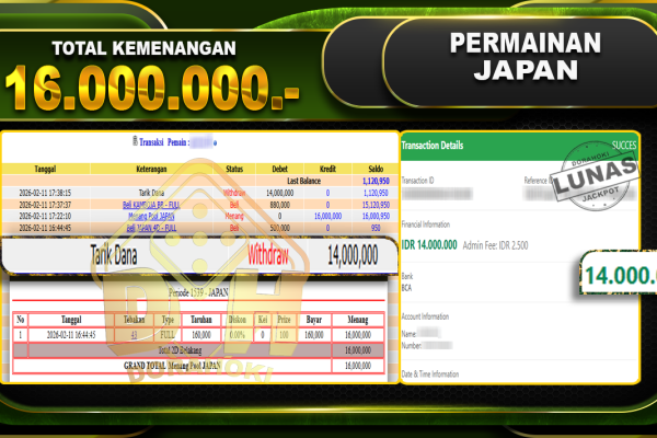Bukti JP TOGEL SINGAPORE – Selamat Kepada User ID : galxxxx atas kemenangan TOGEL SINGAPORE Dengan Nominal Sebesar Rp. 14.210.000,- . Yang pasti nya langsung LUNAS Sesuai Bukti. Kemenangan Berapapun Situs DoraHoki Akan Membayar Lunas yah Kami mengucapkan Terima Kasih telah mempercayakan DORAHOKI sebagai Bandar Online pilihan dalam bermain judi online. Semoga bosku bisa tetap…
