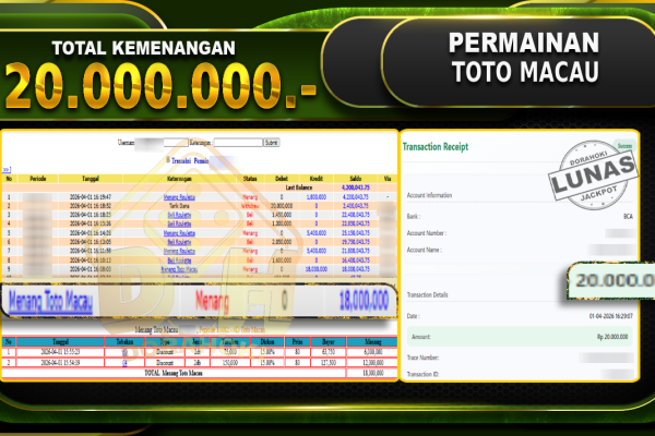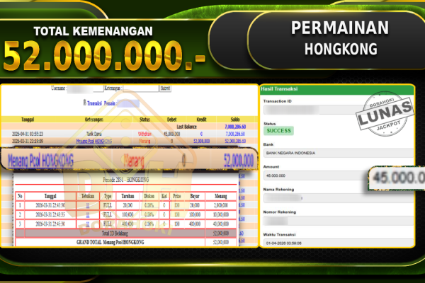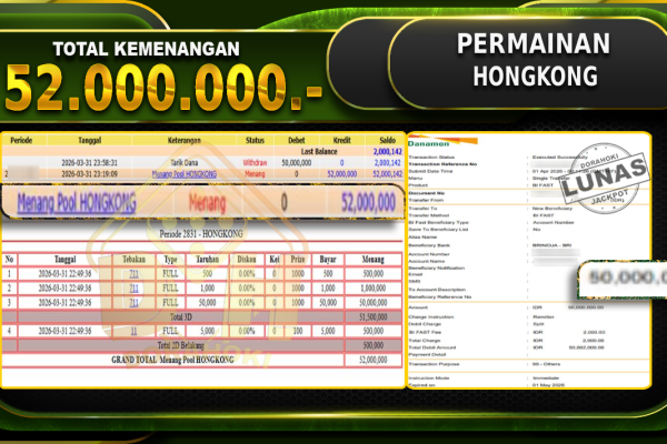 Bukti JP TOGEL HONGKONG – Selamat Kepada User ID: Kupxxx atas kemenangan TOGEL HONGKONG Dengan Nominal Sebesar Rp 52.000.000,- . Yang pasti nya langsung LUNAS Sesuai Bukti. Kemenangan Berapapun Situs DoraHoki Akan Membayar Lunas ya Kami mengucapkan Terima Kasih telah mempercayakan DORAHOKI sebagai Bandar Online pilihan dalam bermain judi online. Semoga bosku bisa tetap bermain…