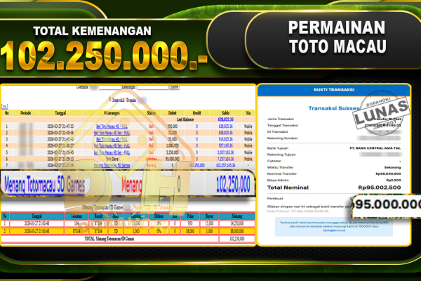 Bukti JP TOGEL TOTO MACAU – Selamat Kepada User ID : Grexxx atas kemenangan TOGEL TOTO MACAU Dengan Nominal Sebesar Rp. 10.450.000,- . Yang pasti nya langsung LUNAS Sesuai Bukti. Kemenangan Berapapun Situs DoraHoki Akan Membayar Lunas ya Kami mengucapkan Terima Kasih telah mempercayakan DORAHOKI sebagai Bandar Online pilihan dalam bermain judi online. Semoga bosku bisa…