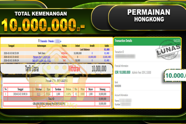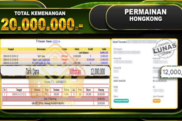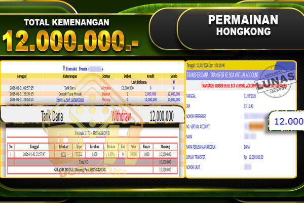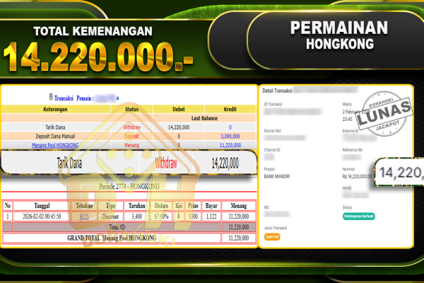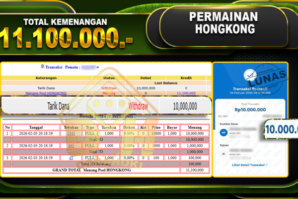 Bukti JP TOGEL HONGKONG – Selamat Kepada User ID: kumxxx atas kemenangan TOGEL HONGKONG Dengan Nominal Sebesar Rp 11.100.000,- . Yang pasti nya langsung LUNAS Sesuai Bukti. Kemenangan Berapapun Situs DoraHoki Akan Membayar Lunas yah Kami mengucapkan Terima Kasih telah mempercayakan DORAHOKI sebagai Bandar Online pilihan dalam bermain judi online. Semoga bosku bisa tetap bermain…