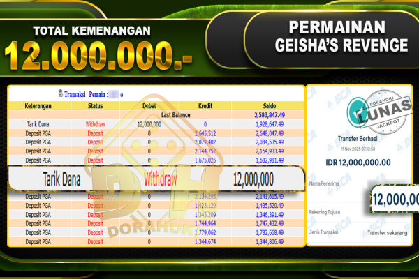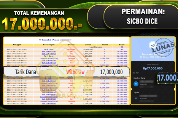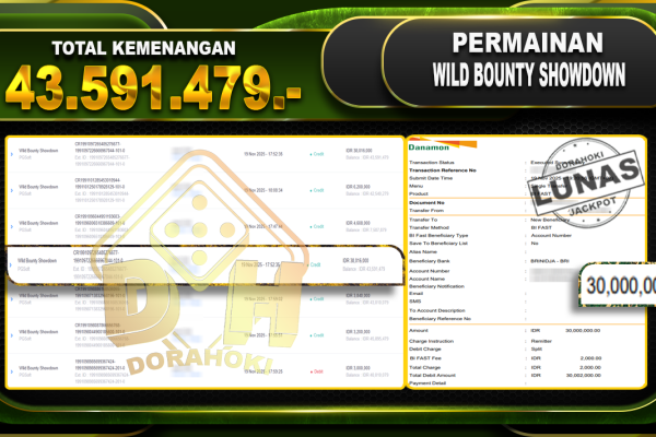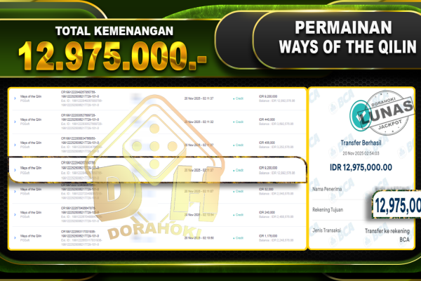 Bukti JP Ways of the Qilin – ucapkan selamat kepada user id bawxx atas kemenangan di Ways of the Qilin dengan total kemenangan .Rp12,975,000,- . Yang pasti nya langsung LUNAS sesuai bukti ya bosku. Dorahoki nih bosku berapapun akan tetap kami bayar lunas ya bosku. Kami mengucapkan Terima Kasih telah mempercayakan DORAHOKI sebagai Bandar Online…