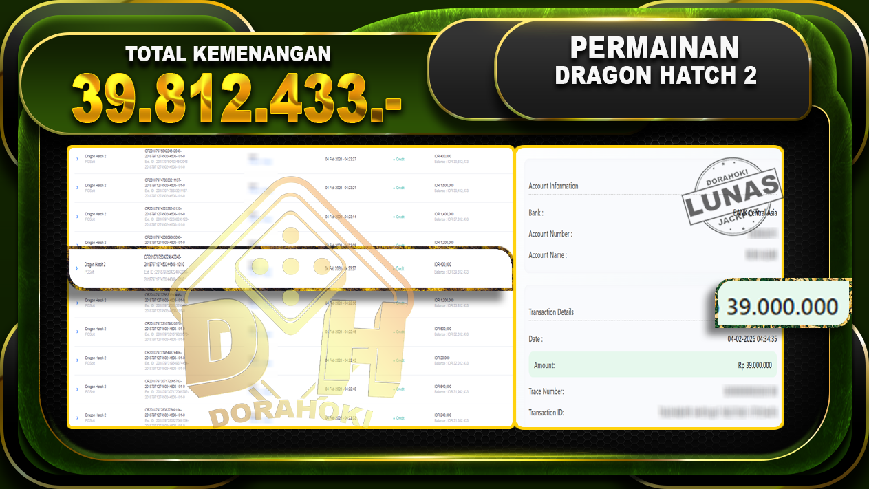 Bukti JP Dragon Hatch 2 – Yang kami berikan ini sah dan real tanpa di rekayasa bosku dan hanya bertujuan untuk meningkatkan kepercayaan member kami dan memberikan kenyamanan saat bermain jadi bosku tidak perlu khawatir MENANG BERAPAPUN PASTI KAMI BAYAR LUNAS!!