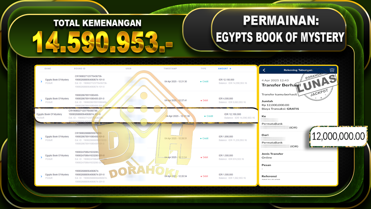 Bukti JP Egypts Book Of Mystery – Yang kami berikan ini sah dan real tanpa di rekayasa bosku dan hanya bertujuan untuk meningkatkan kepercayaan member kami dan memberikan kenyamanan saat bermain jadi bosku tidak perlu khawatir MENANG BERAPAPUN PASTI KAMI BAYAR LUNAS!!