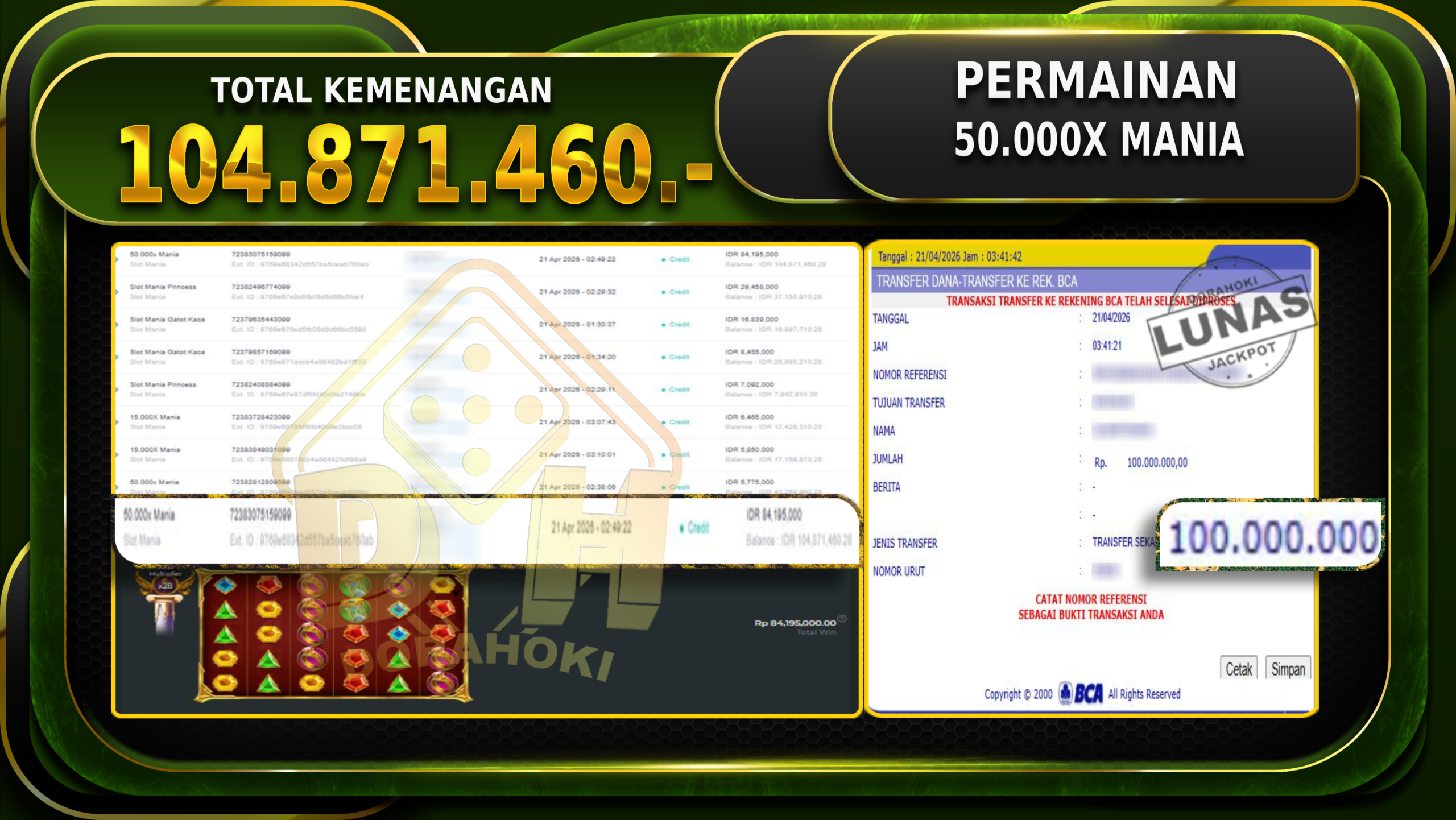 Bukti JP Gates Of Gatot Kaca 1000 – ucapkan selamat kepada user id sabxxx atas kemenangan di Gates Of Gatot Kaca 1000 dengan total kemenangan Rp.12.698.269,- . Yang pasti nya langsung LUNAS sesuai bukti ya bosku. Dorahoki nih bosku berapapun akan tetap kami bayar lunas ya bosku.