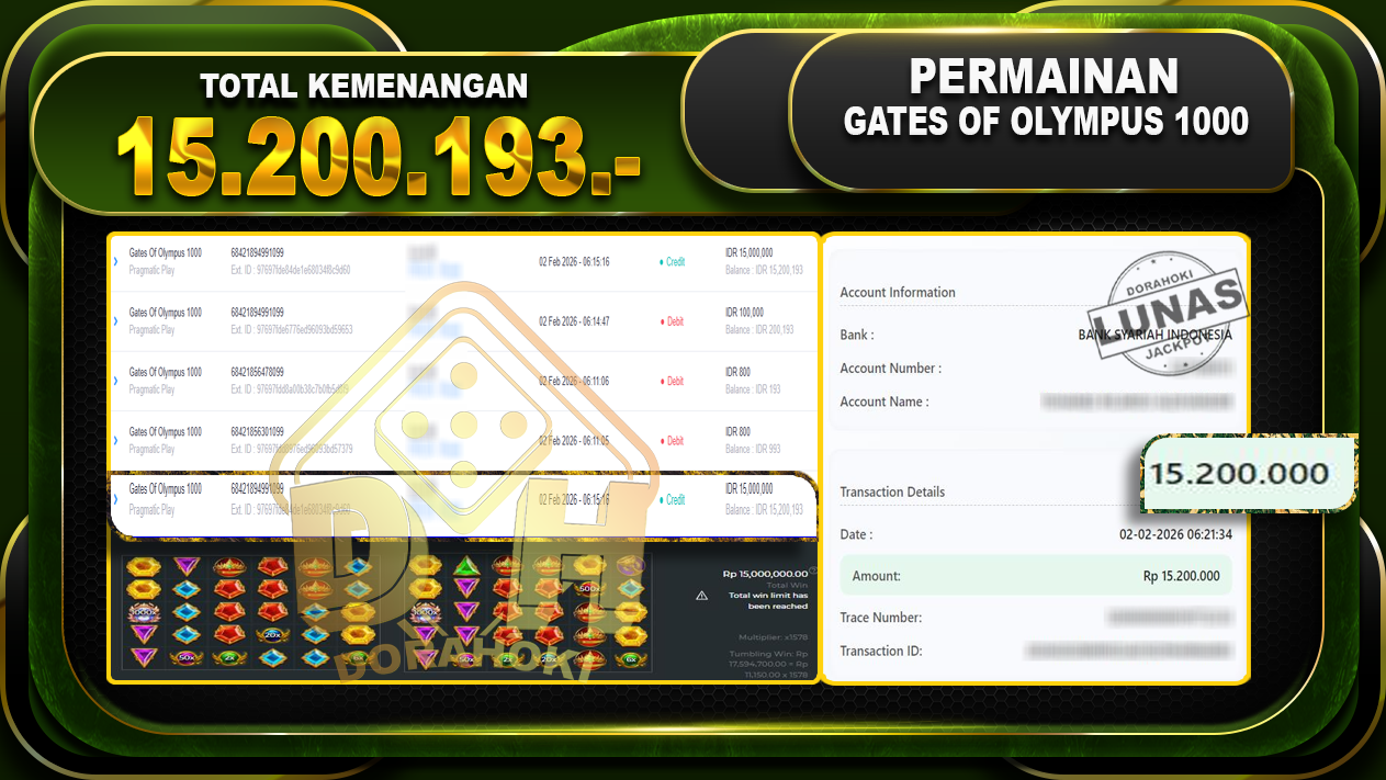 Bukti JP Gates Of Olympus 1000 – Selamat Kepada User ID : ricxxx atas kemenangan Gates Of Olympus 1000 Dengan Nominal Sebesar Rp 15.200.193,- . Yang pasti nya langsung LUNAS Sesuai Bukti.