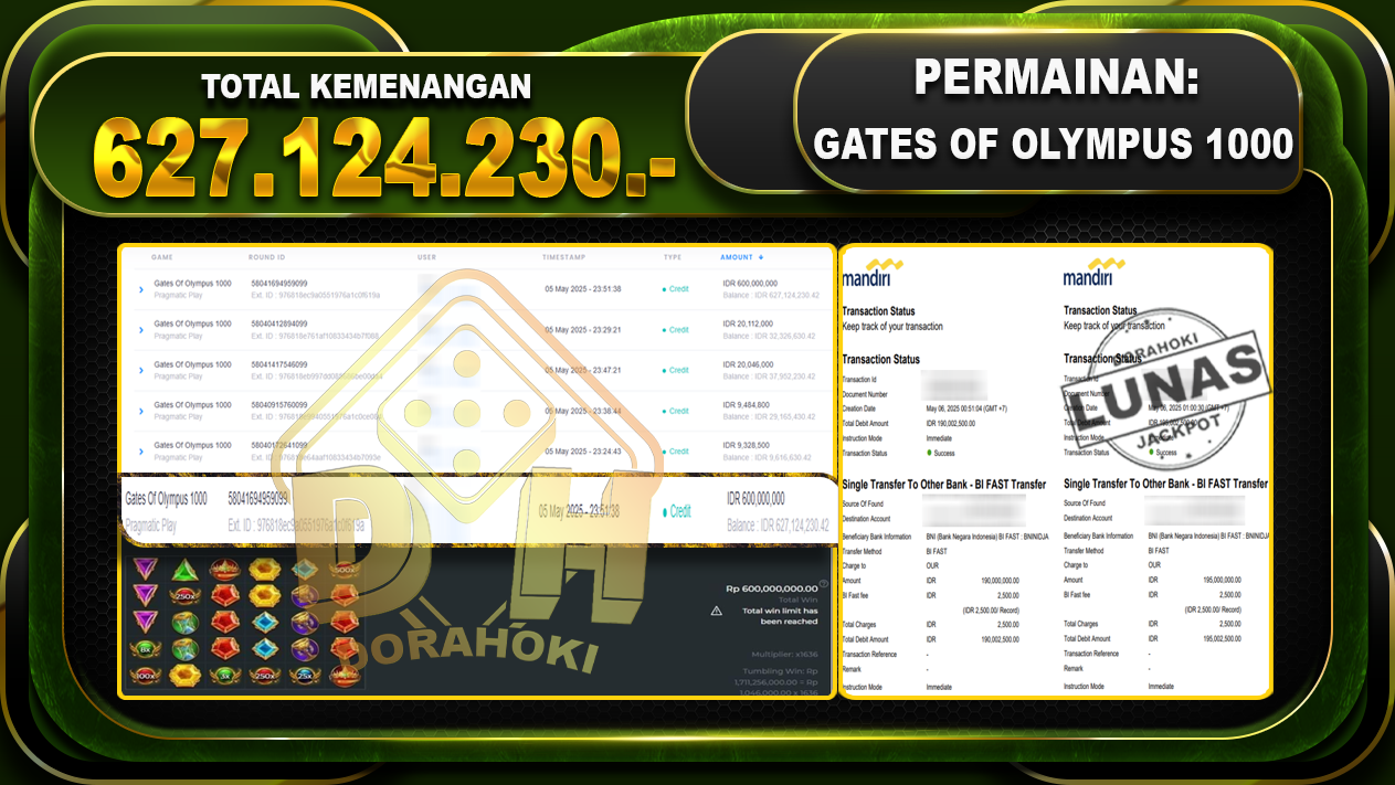 Bukti JP GATES OF OLYMPUS 1000 – ucapkan selamat kepada user id Jitxxx atas kemenangan di GATES OF OLYMPUS 1000 dengan total kemenangan Rp.627.124.230,- . Yang pasti nya langsung LUNAS sesuai bukti ya bosku. Dorahoki nih bosku berapapun akan tetap kami bayar lunas ya bosku.