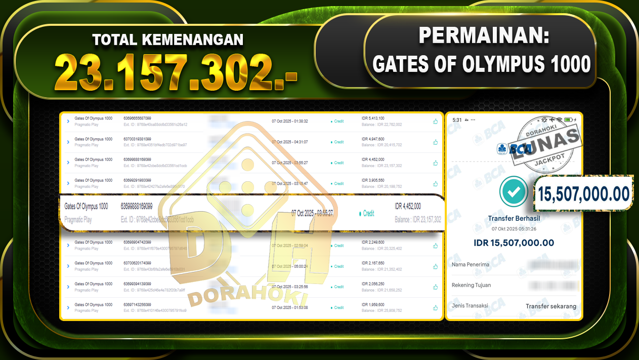 Bukti JP Gates Of Olympus 1000 – ucapkan selamat kepada user id Varxxx atas kemenangan di Gates Of Olympus 1000 dengan total kemenangan Rp.23,157.302,- Yang pasti nya langsung LUNAS sesuai bukti ya bosku. Dorahoki nih bosku berapapun akan tetap kami bayar lunas ya bosku