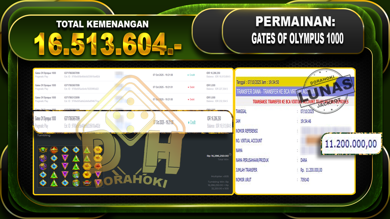 Bukti JP Gates Of Olympus 1000 – ucapkan selamat kepada user id brexxxxxx atas kemenangan di Gates Of Olympus 1000 dengan total kemenangan Rp.16,513.604,- Yang pasti nya langsung LUNAS sesuai bukti ya bosku. Dorahoki nih bosku berapapun akan tetap kami bayar lunas ya bosku