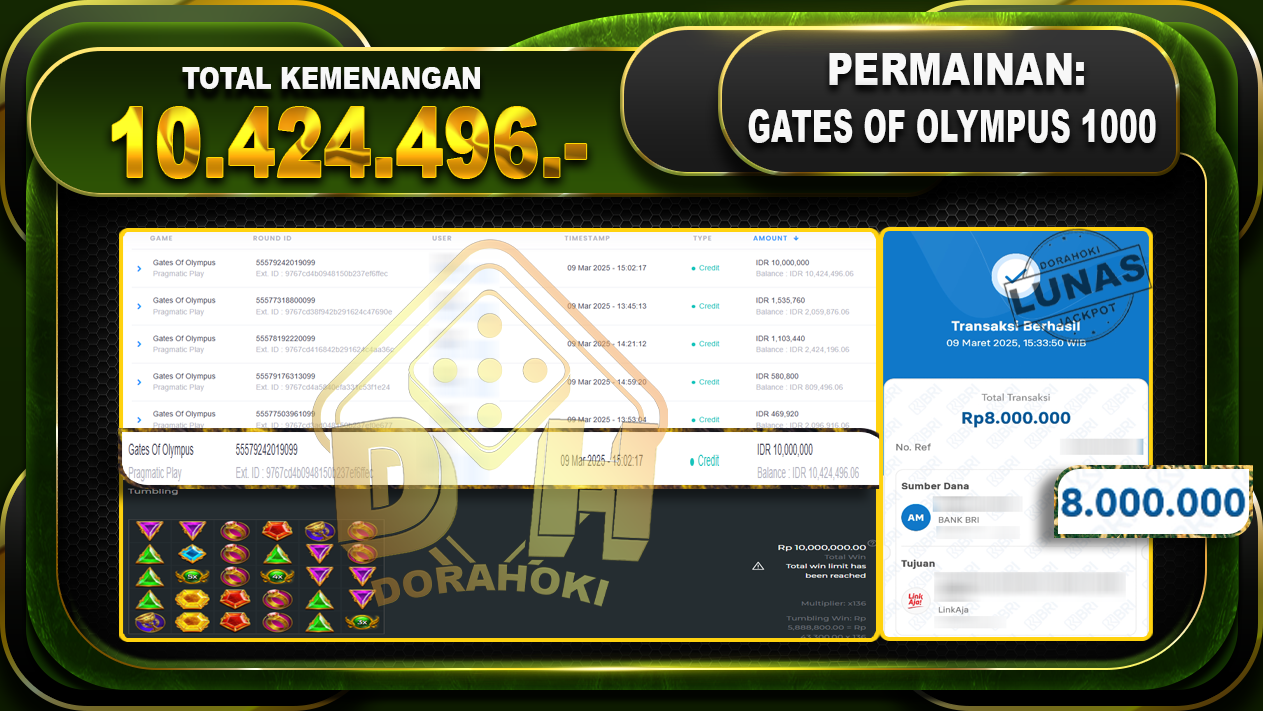 Bukti JP GATES OF OLYMPUS 1000 – ucapkan selamat kepada user id Wanxxx atas kemenangan di GATES OF OLYMPUS 1000 dengan total kemenangan Rp.10.424.496,- . Yang pasti nya langsung LUNAS sesuai bukti ya bosku. Dorahoki nih bosku berapapun akan tetap kami bayar lunas ya bosku.
