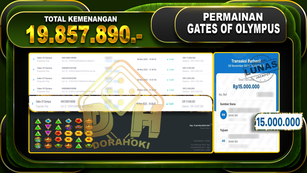 Bukti JP Gates Of Olympus 1000 – ucapkan selamat kepada user id kakxxxx atas kemenangan di Gates Of Olympus 1000 dengan total kemenangan Rp.19.857.890,- Yang pasti nya langsung LUNAS sesuai bukti ya bosku. Dorahoki nih bosku berapapun akan tetap kami bayar lunas ya bosku