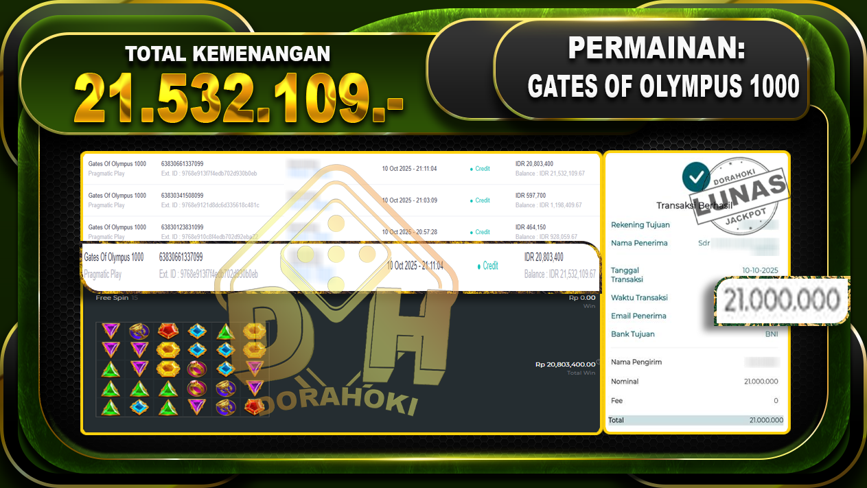 Bukti JP Gates Of Olympus 1000 – ucapkan selamat kepada user id timaxxxxx atas kemenangan di Gates Of Olympus 1000 dengan total kemenangan Rp.21,532.109,- Yang pasti nya langsung LUNAS sesuai bukti ya bosku. Dorahoki nih bosku berapapun akan tetap kami bayar lunas ya bosku