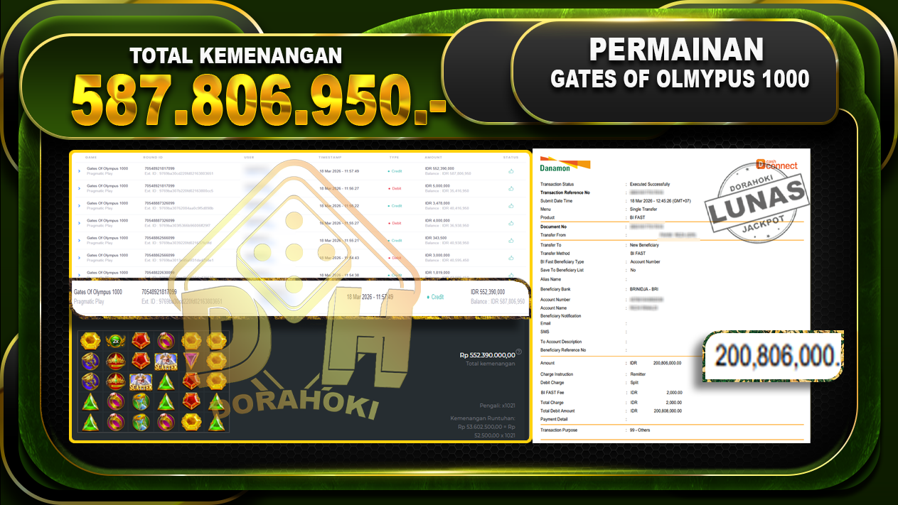 Bukti JP Gates Of Olympus 1000 – Selamat Kepada User ID : Tonxxx atas kemenangan Gates Of Olympus 1000 Dengan Nominal Sebesar Rp 587.806.950,- . Yang pasti nya langsung LUNAS Sesuai Bukti.