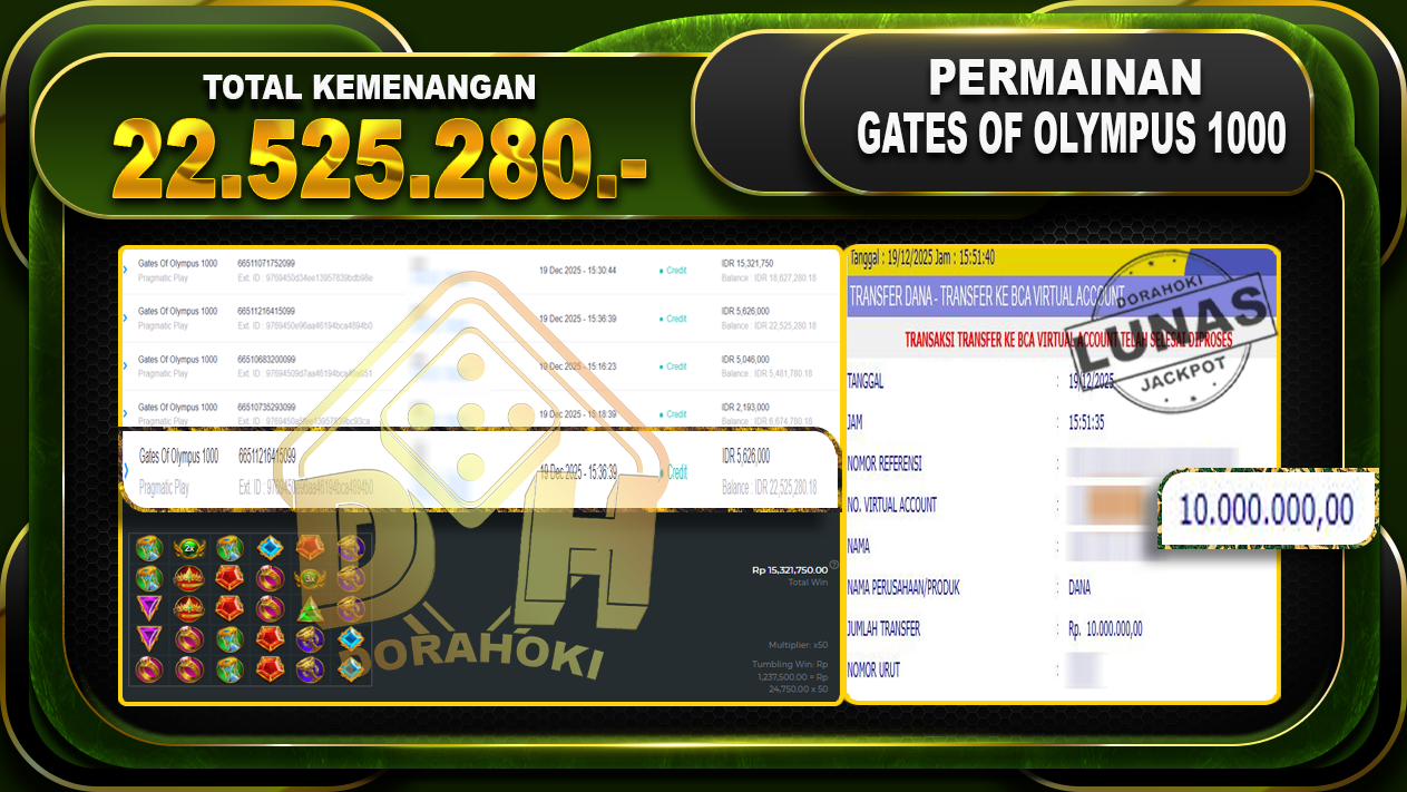 Bukti JP Gates Of Olympus 1000 – ucapkan selamat kepada user id adixxxxx atas kemenangan di Gates Of Olympus 1000 dengan total kemenangan Rp.22.525.280,- Yang pasti nya langsung LUNAS sesuai bukti ya bosku. Dorahoki nih bosku berapapun akan tetap kami bayar lunas ya bosku