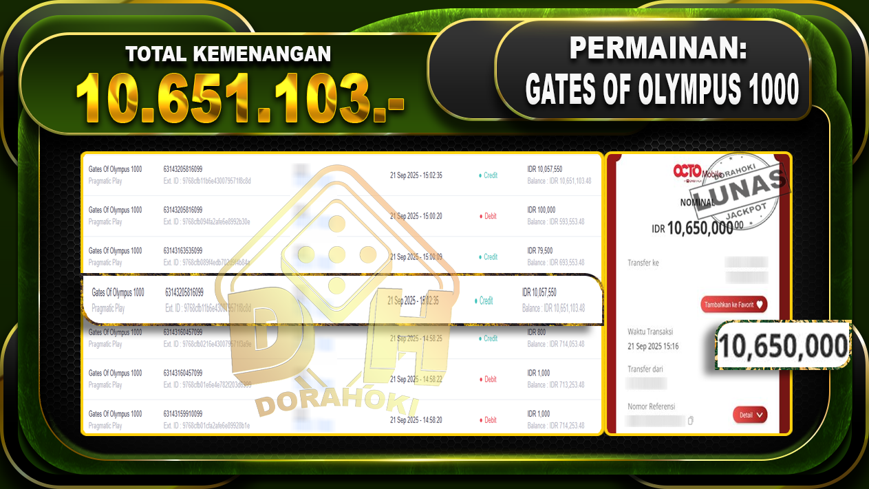 Bukti JP Gates Of Olympus 1000 – ucapkan selamat kepada user id utoxxx atas kemenangan di  Gates Of Olympus 1000 dengan total kemenangan Rp.10,651.103,- Yang pasti nya langsung LUNAS sesuai bukti ya bosku. Dorahoki nih bosku berapapun akan tetap kami bayar lunas ya bosku