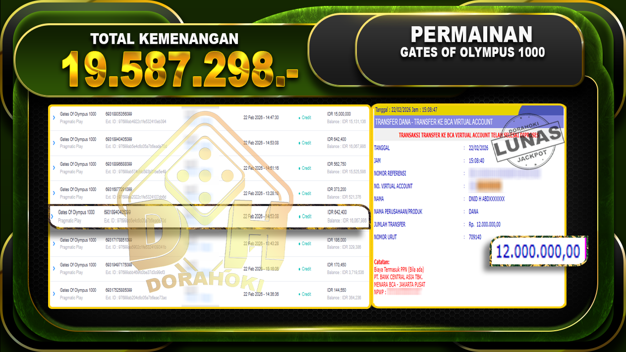 Bukti JP Gates Of Olympus 1000 – Selamat Kepada User ID : Losxxx atas kemenangan Gates Of Olympus 1000 Dengan Nominal Sebesar Rp 19.587.298,- . Yang pasti nya langsung LUNAS Sesuai Bukti.
