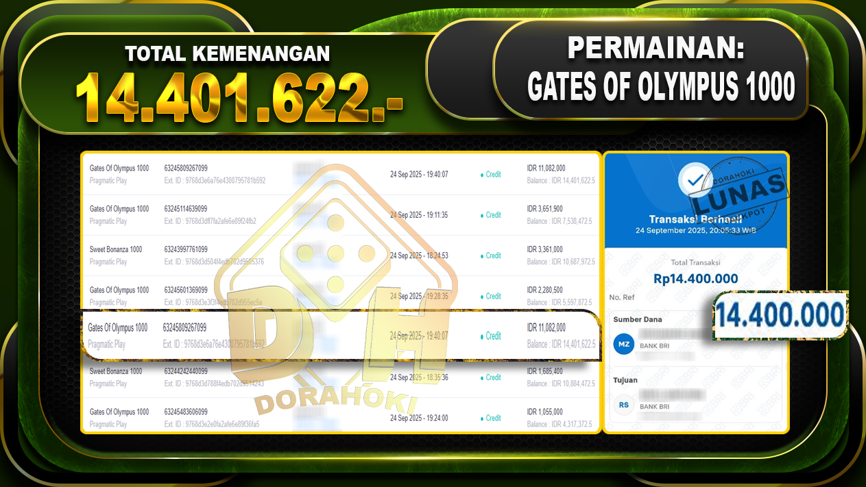 Bukti JP Gates Of Olympus 1000 – ucapkan selamat kepada user id praxxxxxx atas kemenangan di Gates Of Olympus 1000 dengan total kemenangan Rp.14,401.622,- Yang pasti nya langsung LUNAS sesuai bukti ya bosku. Dorahoki nih bosku berapapun akan tetap kami bayar lunas ya bosku