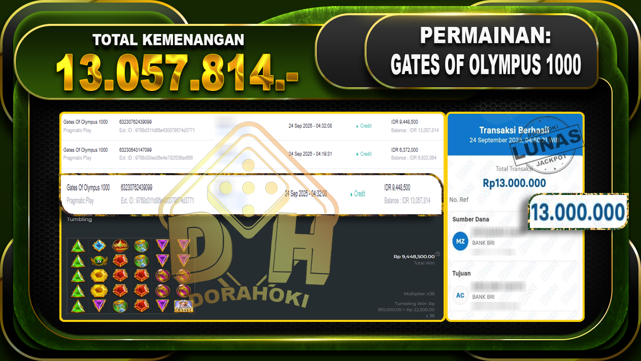 Bukti JP Gates Of Olympus 1000 – ucapkan selamat kepada user id totxxxxx atas kemenangan di Gates Of Olympus 1000 dengan total kemenangan Rp.13,057.814,- Yang pasti nya langsung LUNAS sesuai bukti ya bosku. Dorahoki nih bosku berapapun akan tetap kami bayar lunas ya bosku