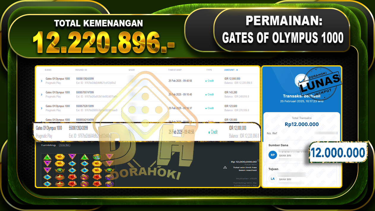 Bukti JP GATES OF OLYMPUS 1000 – ucapkan selamat kepada user id amxxx atas kemenangan di GATES OF OLYMPUS 1000 dengan total kemenangan Rp.12.220.896,- . Yang pasti nya langsung LUNAS sesuai bukti ya bosku. Dorahoki nih bosku berapapun akan tetap kami bayar lunas ya bosku.
