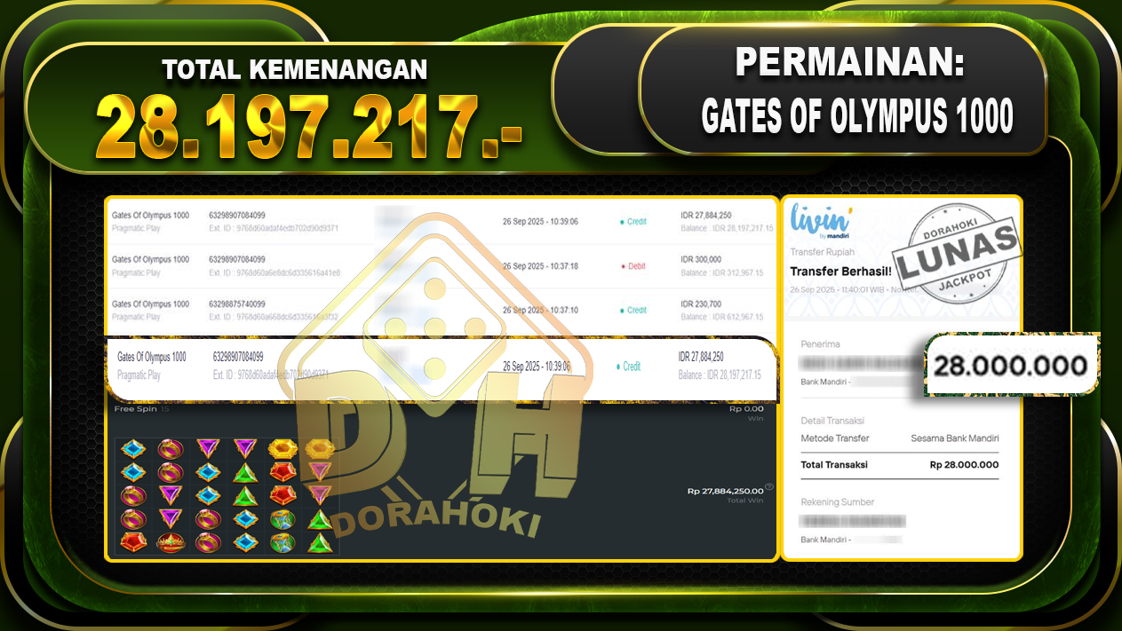 Bukti JP Gates Of Olympus 1000 – ucapkan selamat kepada user id bahxxxx atas kemenangan di Gates Of Olympus 1000 dengan total kemenangan Rp.28,197.217,- Yang pasti nya langsung LUNAS sesuai bukti ya bosku. Dorahoki nih bosku berapapun akan tetap kami bayar lunas ya bosku